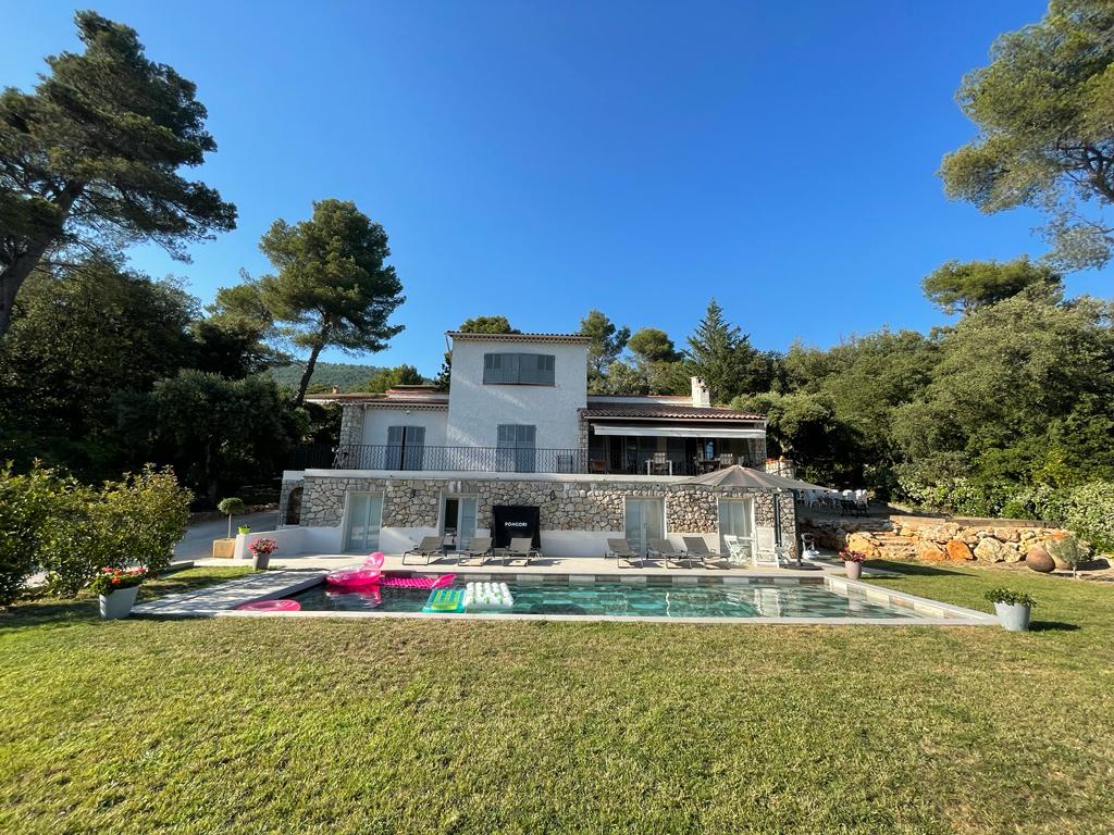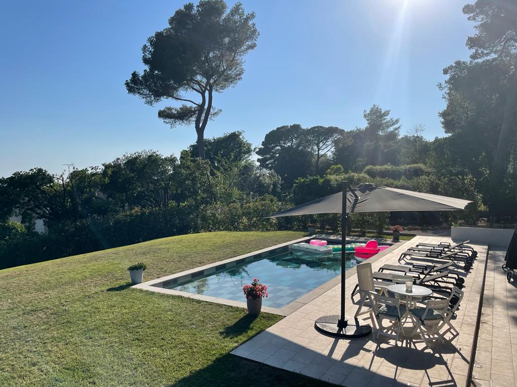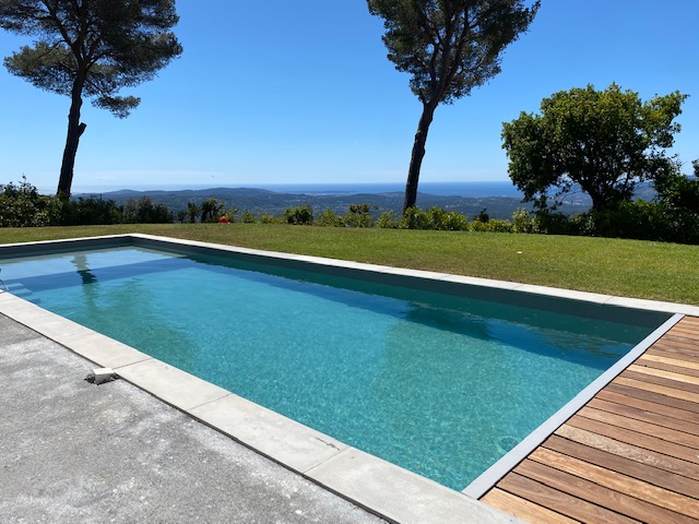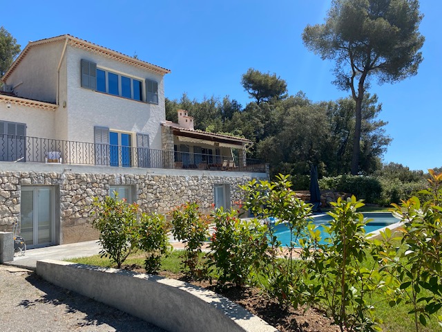 La villa est située en bordure de colline, avec une vue panoramique sur la Riviera.